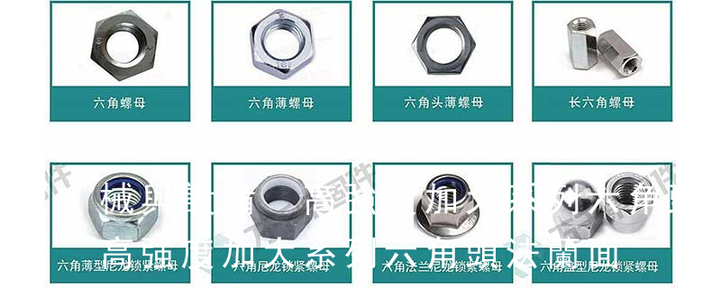 六角法蘭面螺栓的頭部由六角頭和法蘭面兩部分組成,其“支撐面積與應力面積字比值”要大于普通六角頭螺栓,故這種螺栓能承受更高的預緊力,防松性能也較好,因而被廣泛用于汽車發動機、重型機械等產品上。六角頭頭部帶孔、帶 螺母常用的國家標準有《GB41 Ⅰ型六角螺母——C級》、《GB6170 Ⅰ型六角螺母——A、B級》、《GB6171Ⅰ型六角螺母—細牙—A、B級》、《GB6172六角薄螺母——A、B級—倒角》、《GB6173六角薄螺母——細牙—A、B級》;